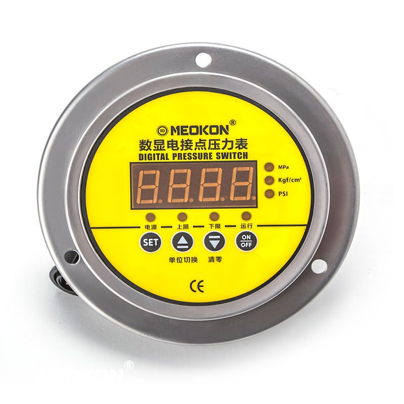 數(shù)顯電接點(diǎn)壓力表可彌補(bǔ)機(jī)械式電接點(diǎn)壓力表在測量精度和控制靈敏度及使用壽命上的不足,它的接線方式與傳統(tǒng)的機(jī)械電接點(diǎn)壓力表一致,設(shè)置方便,耐用抗沖擊頻繁,特別適合震動(dòng)強(qiáng)烈的工況。如液壓機(jī)、注塑機(jī)、高壓清洗機(jī)、熱工機(jī)械等設(shè)備配套。是完全可替代機(jī)械電接點(diǎn)壓力表。